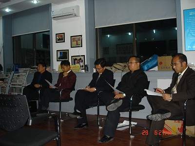 27日晚,距峰会开幕还有一天,明天就是代表们报到的日子。在这个特殊的时刻,本站记者有幸旁听了组委会开幕前的最后一次全体会议。内大MBA中心学管办主任刘敏老师和秘书邬改利老师听取了各组同学的汇报,并对关键问题作出了提示,高效、简洁、融洽、欢快的气氛洋溢在会议室中。从参会人员的汇报情况看,一切准备工作都已经就绪,内大MBA中心上下正在静候来自八方的朋友;从大家的精神状态上看,丝毫没有连续工作多日的疲惫,每个与会成员都精神百倍、热情洋溢的讨论着。由此我们完全可以相信,此次峰必将会是圆满成功的一届!