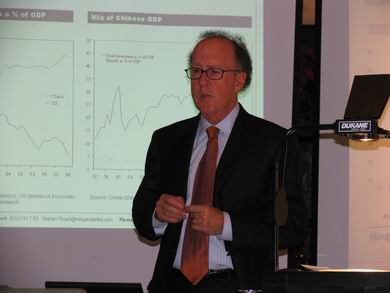 下午,摩根斯坦利公司全球首席经济学家史蒂芬•罗奇(Stephen Roach)先生做了精彩演讲, 他认为中国经济未来的增长应该是消费驱动型的增长,在从投资驱动型到消费驱动型的过渡中,中国经济的增长速度有可能从当前的快速增长9.5%调整到7.5%以下。另外,罗奇先生还提到了人民币将会以每年3-5%的速度升值。来自KPMG的资深合伙人路易斯•沃尔特(Louis Walter)先生以及他的团队为校友们做了有关全球并购的讲解,哈佛商学院高级副院长约翰•奎尔奇(John Quelch)教授也做了有关全球品牌的精彩的学术演讲,使校友们获益匪浅。
