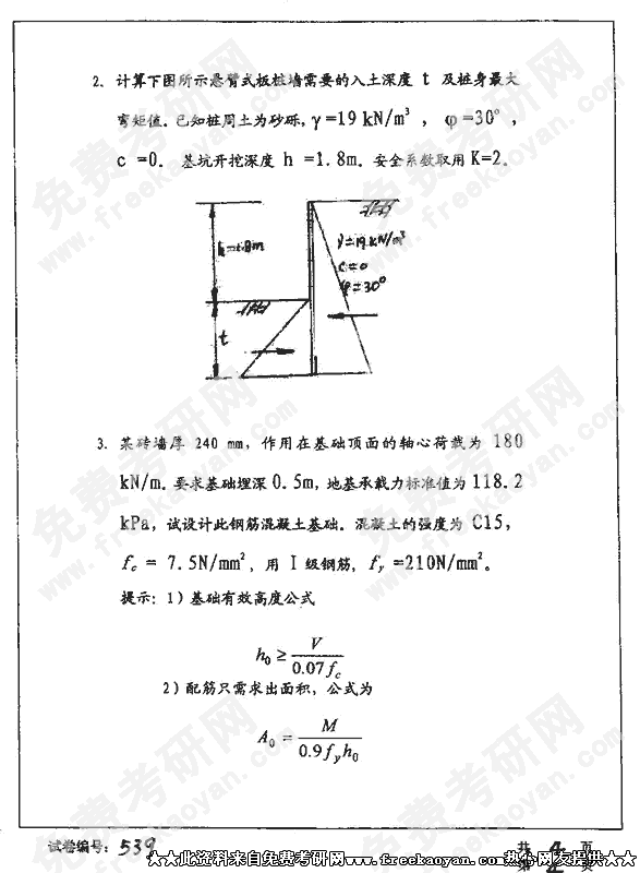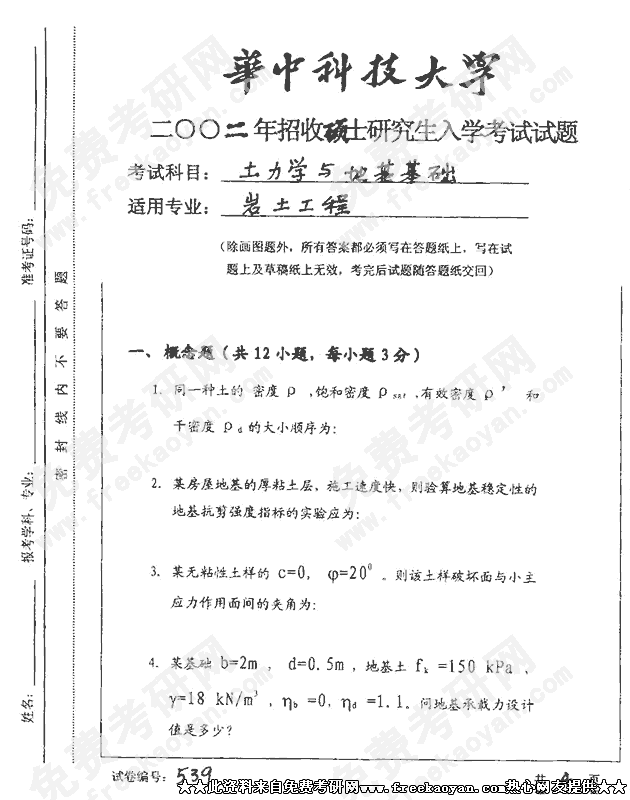 华中科技大学2002年硕士研究生入学考试土力学与地基基础