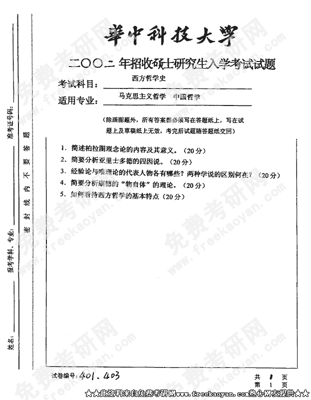 华中科技大学2002年硕士研究生入学考试西方哲学史