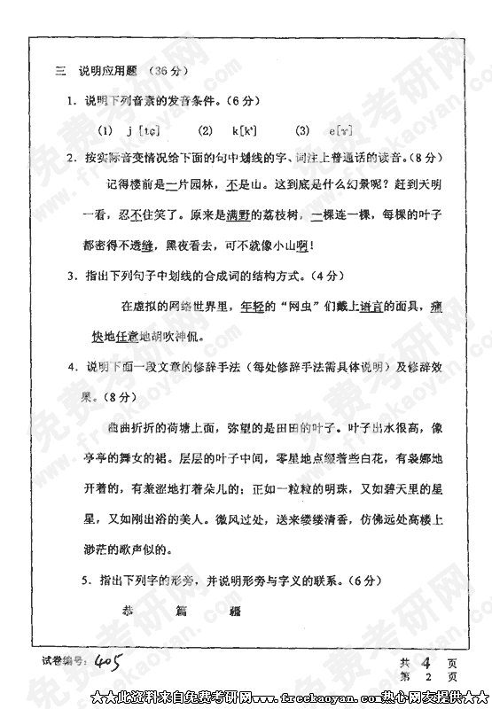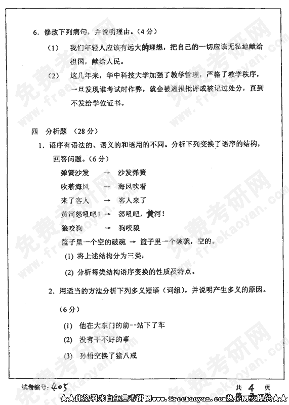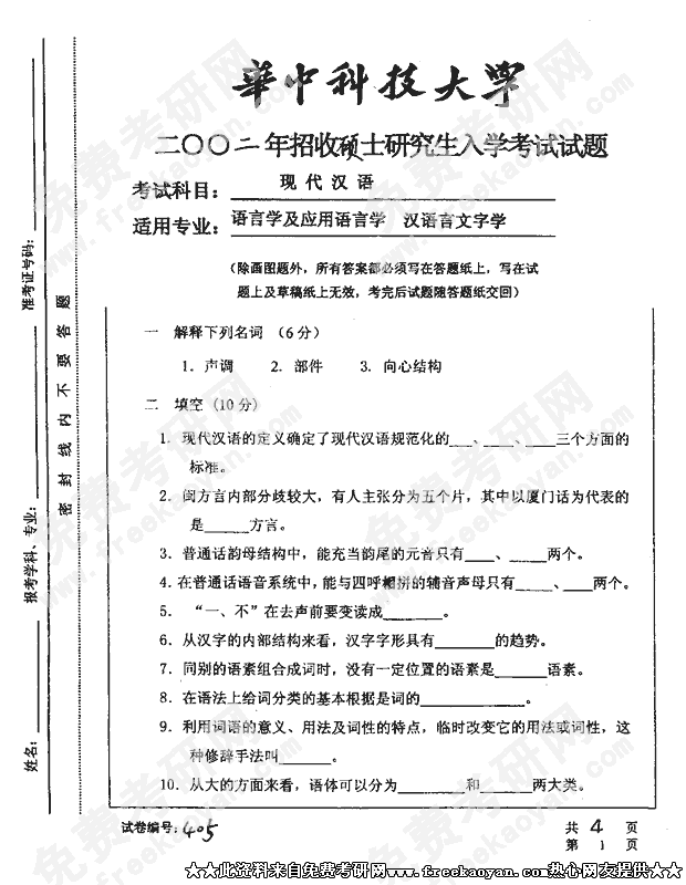 华中科技大学2002年硕士研究生入学考试现代汉语