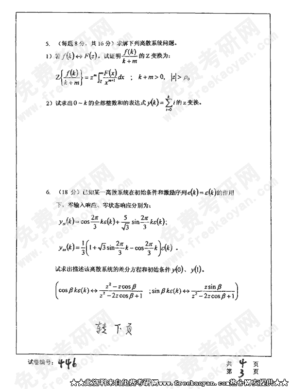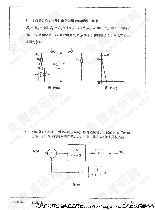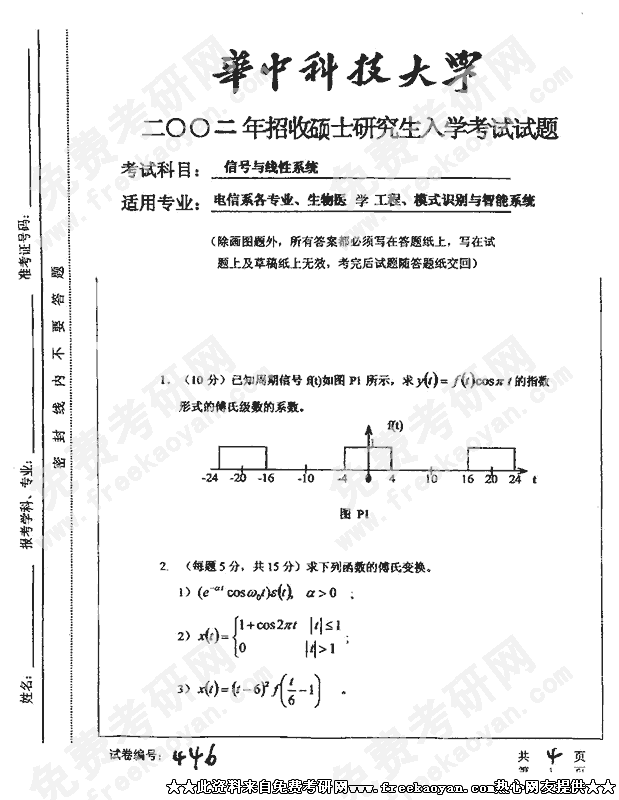 华中科技大学2002年硕士研究生入学考试信号与线形系统