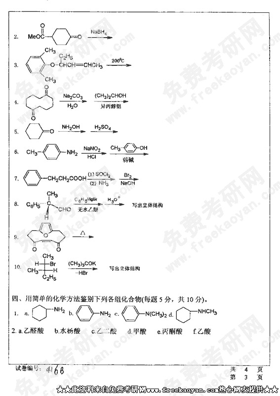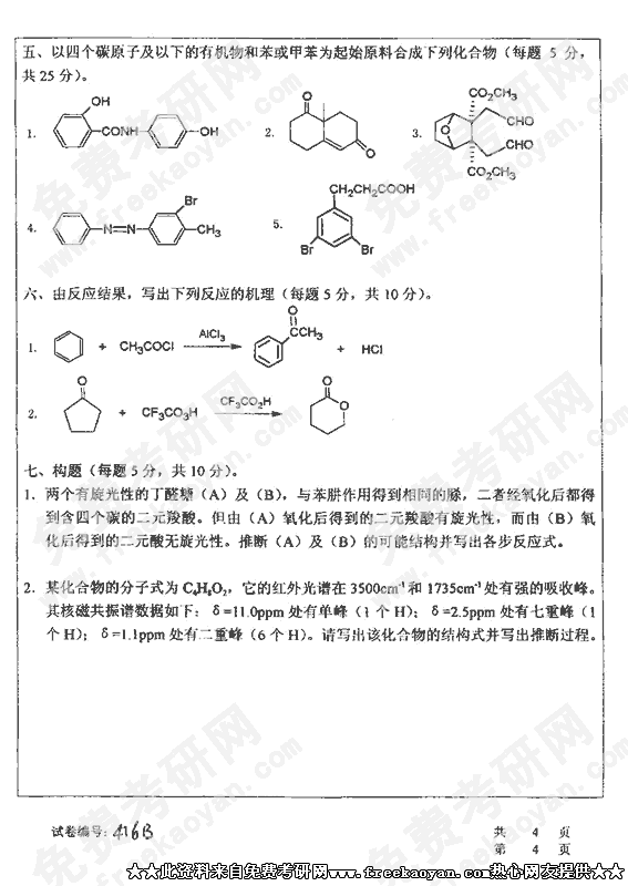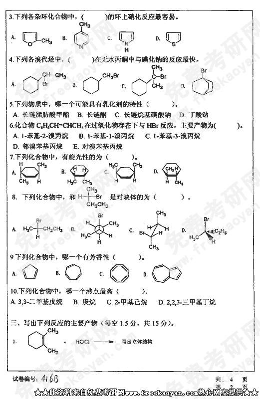华中科技大学2002年硕士研究生入学考试有机化学B卷
