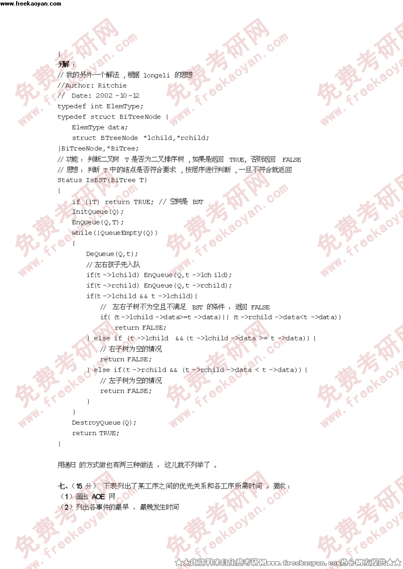 专业课考研经验 本站小编 FreeKaoyan 2018-01-222002 民商(民法学考试)一、简答(共75分)1.简述法人终止的原因。(10分)2.什么是主物?什么是从物?划分两者的意义是什么?(10分)3.试述民事法律行为的分类?(20分)4.缔约上过失之债的成立要件。(10分)5.试述遗产的法律特征?6.担保物权的意义。(10分)二、选答题:(任选一)1. ...