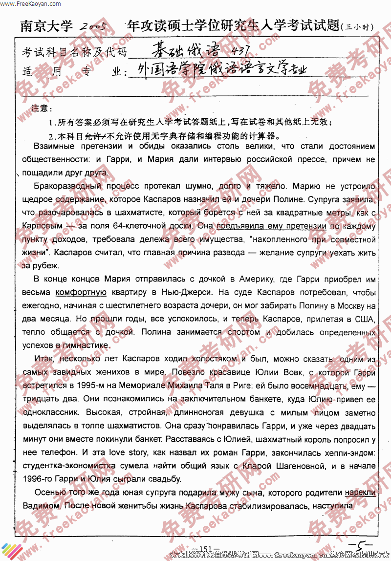 南京大学2005年考研真题-基础俄语(5)