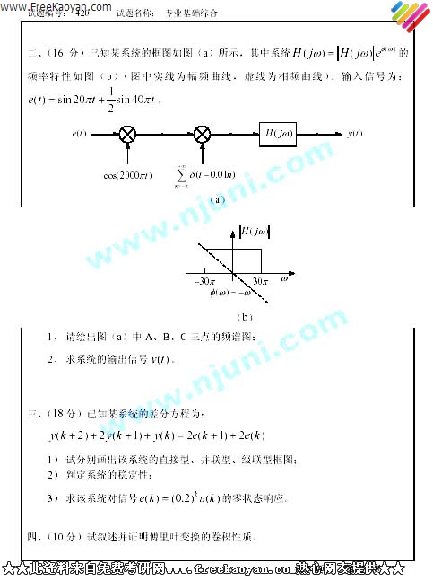 专业课考研经验 本站小编 FreeKaoyan 2018-01-22东南大学2004年考研真题-专业基础综合(信号与系统,数字电路)