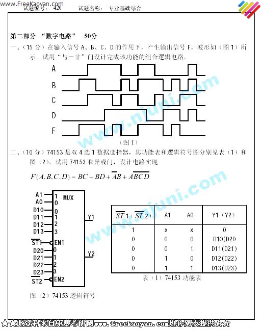 专业课考研经验 本站小编 FreeKaoyan 2018-01-22东南大学2004年考研真题-专业基础综合(信号与系统,数字电路)