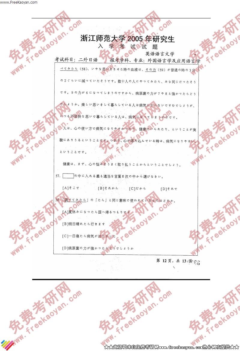 浙江师范大学2005年考研真题-二外日语(12)
