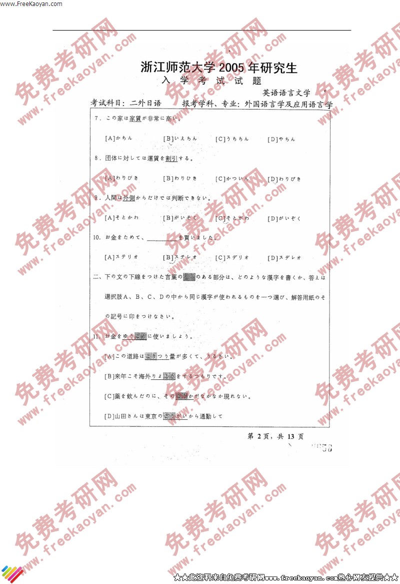 专业课考研经验 本站小编 FreeKaoyan 2018-01-22浙江师范大学2005年考研真题-二外法语