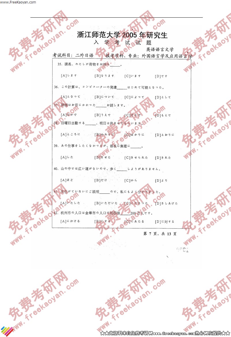浙江师范大学2005年考研真题-二外日语(7)