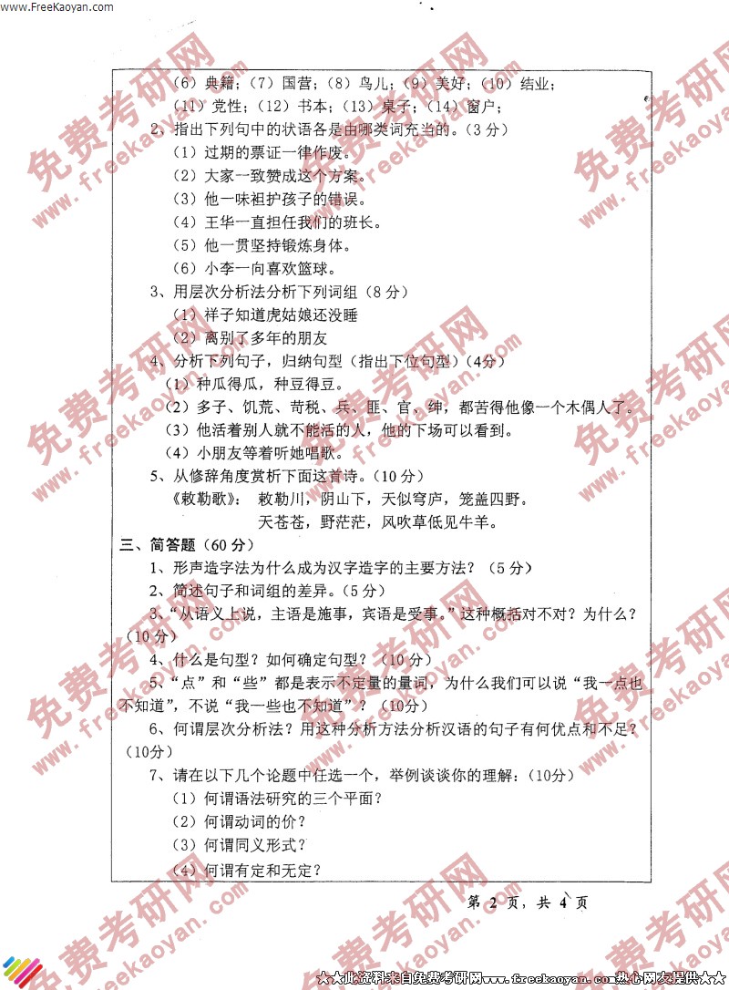 浙江师范大学2005年考研真题-汉语(2)