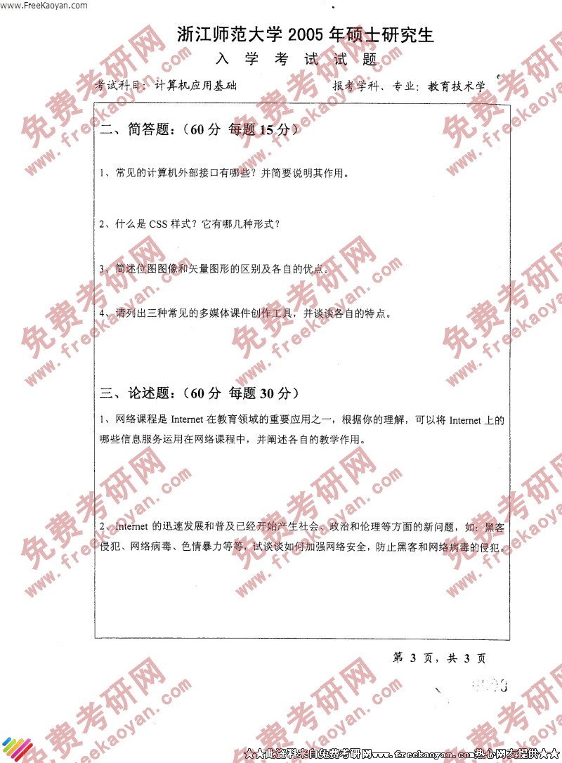 浙江师范大学2005年考研真题-计算机应用基础(3)