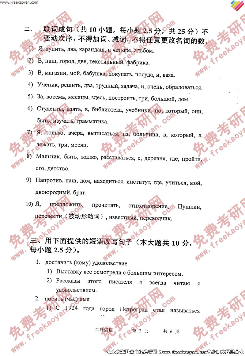专业课考研经验 本站小编 FreeKaoyan 2018-01-22武汉大学2006年考研真题-德语(二外)