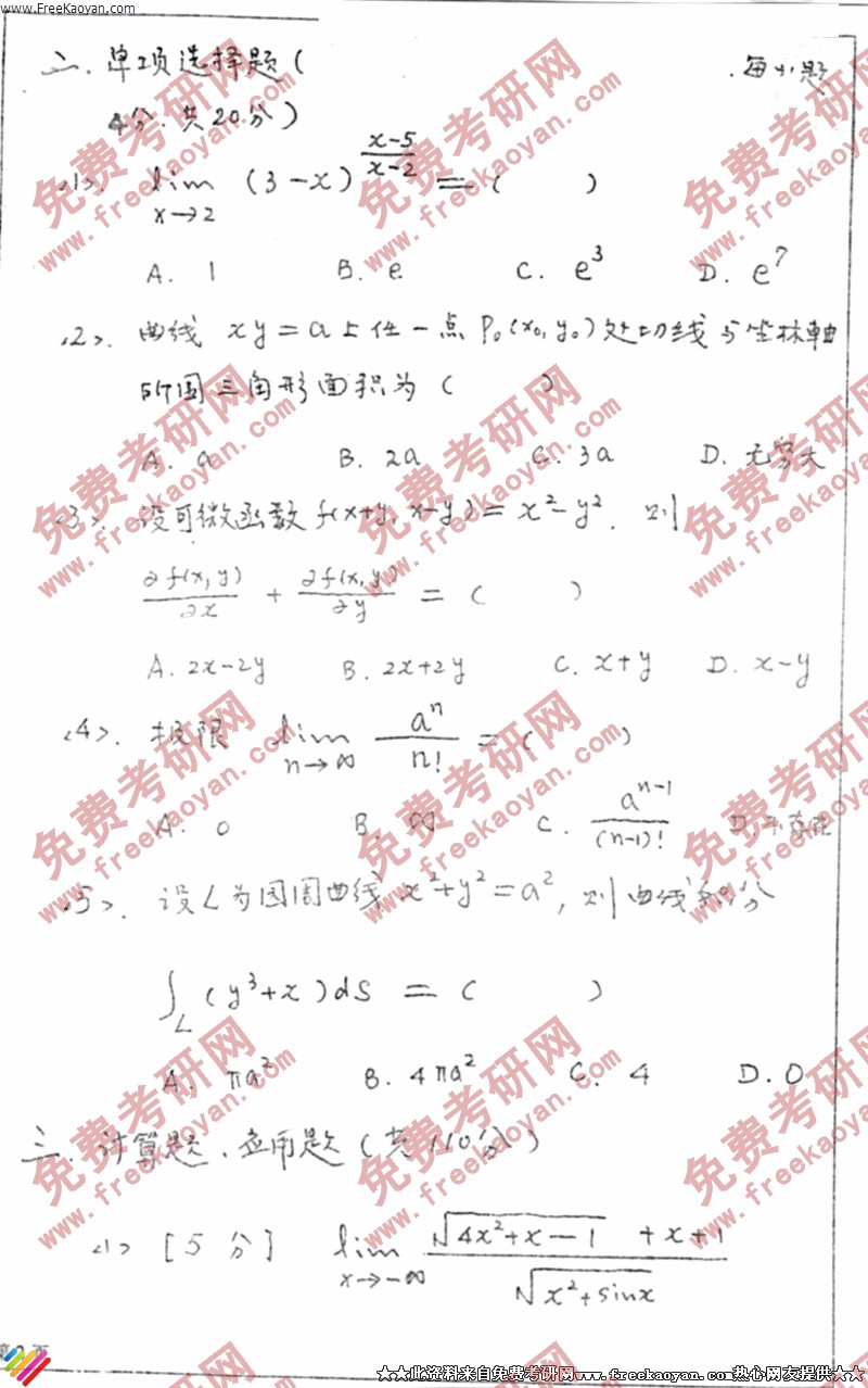 专业课考研经验 本站小编 FreeKaoyan 2018-01-22四川大学2005年考研真题-常微分方程