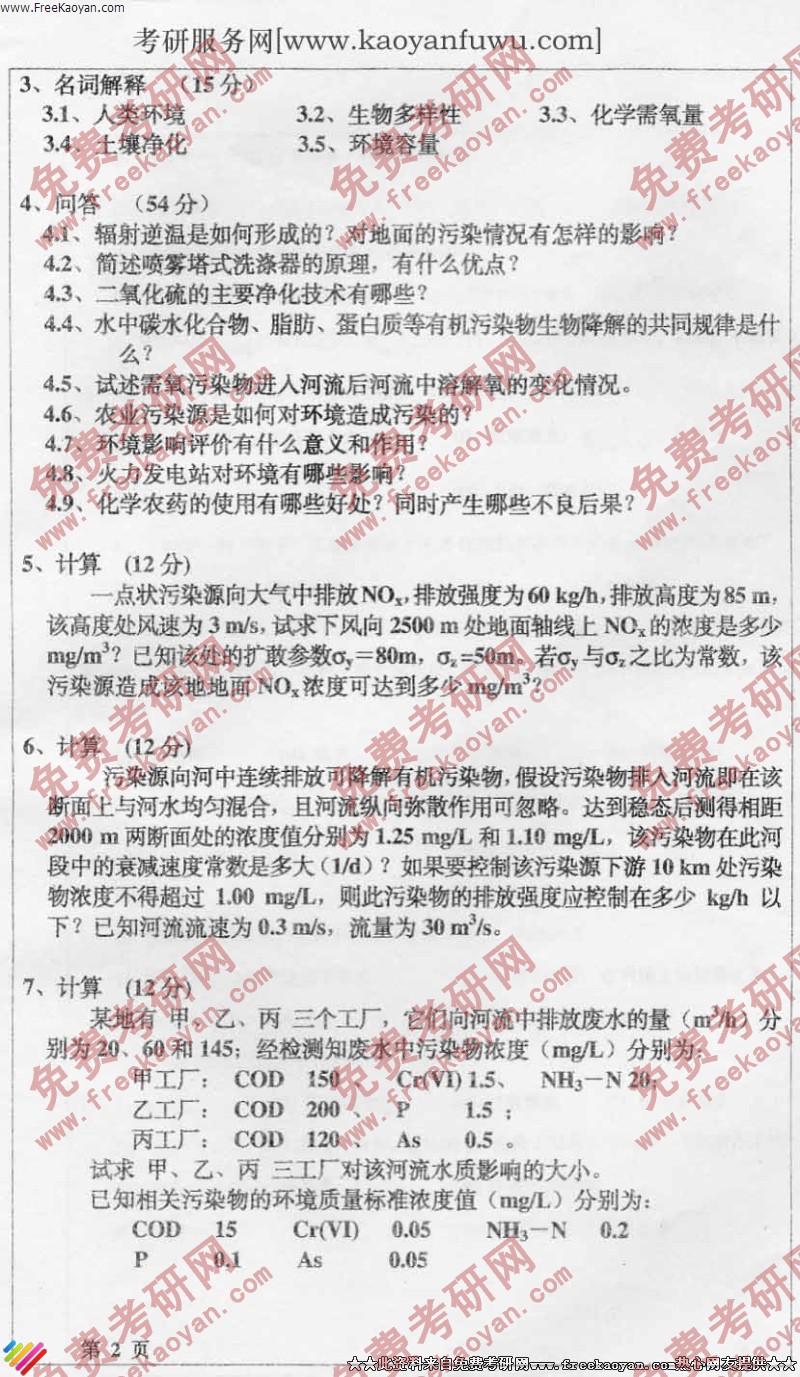 专业课考研经验 本站小编 FreeKaoyan 2018-01-22四川大学2005年考研真题-环境工程