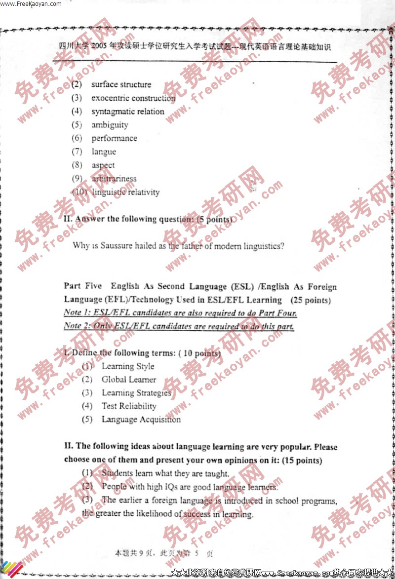 相关话题/英语语言学 考研真题 四川大学 基础知识 理论