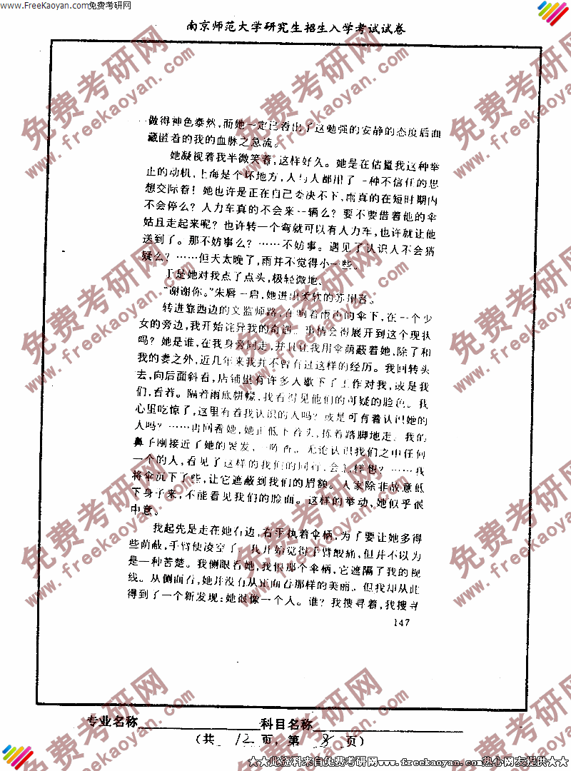 专业课考研经验 本站小编 FreeKaoyan 2018-01-22南京师范大学2003年考研真题-作品评论与写作