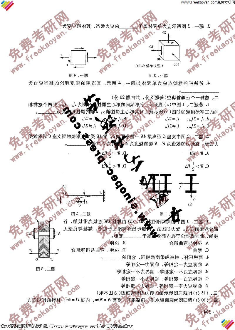 专业课考研经验 本站小编 FreeKaoyan 2018-01-22大连理工大学2004年考研真题-材料力学