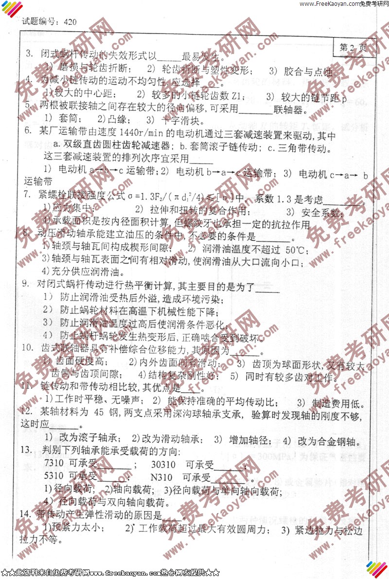专业课考研经验 本站小编 FreeKaoyan 2018-01-22大连理工大学2004年考研真题-机械设计