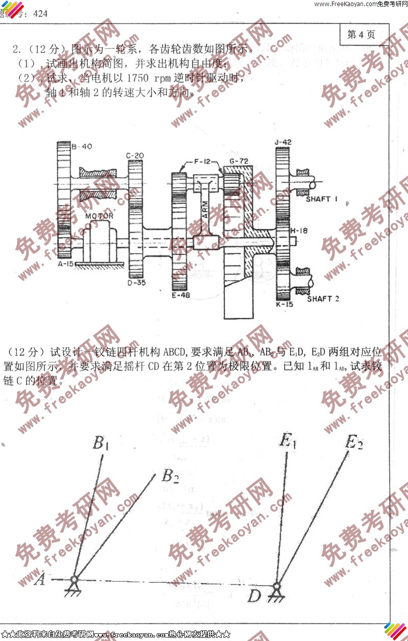 专业课考研经验 本站小编 FreeKaoyan 2018-01-22大连理工大学2004年考研真题-机械原理
