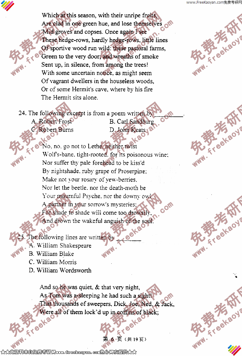 专业课考研经验 本站小编 FreeKaoyan 2018-01-22大连外国语大学2003年考研真题-英美文学