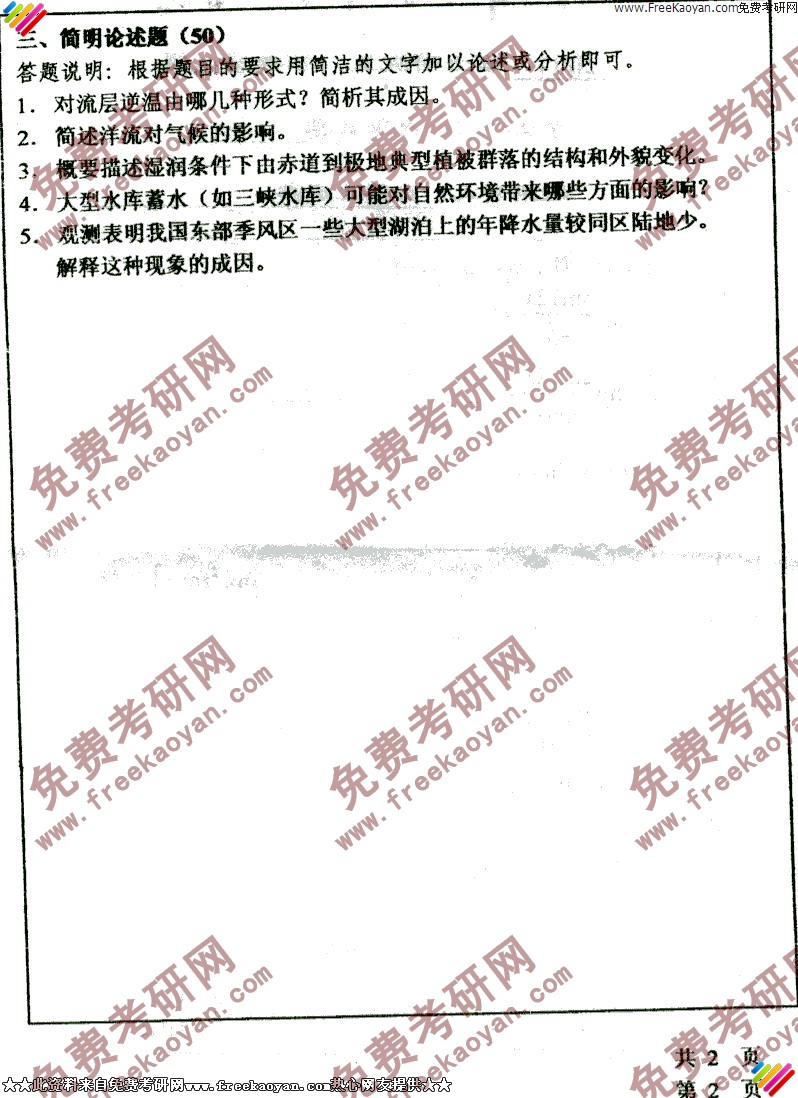 专业课考研经验 本站小编 FreeKaoyan 2018-01-22华南师范大学2002年考研真题-自然地理学