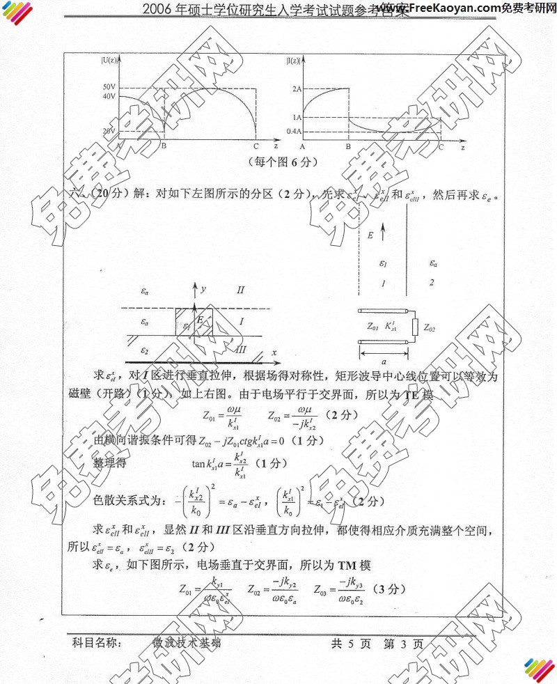 专业课考研经验 本站小编 FreeKaoyan 2018-01-22中国科学技术大学2006年考研真题-微波技术基础