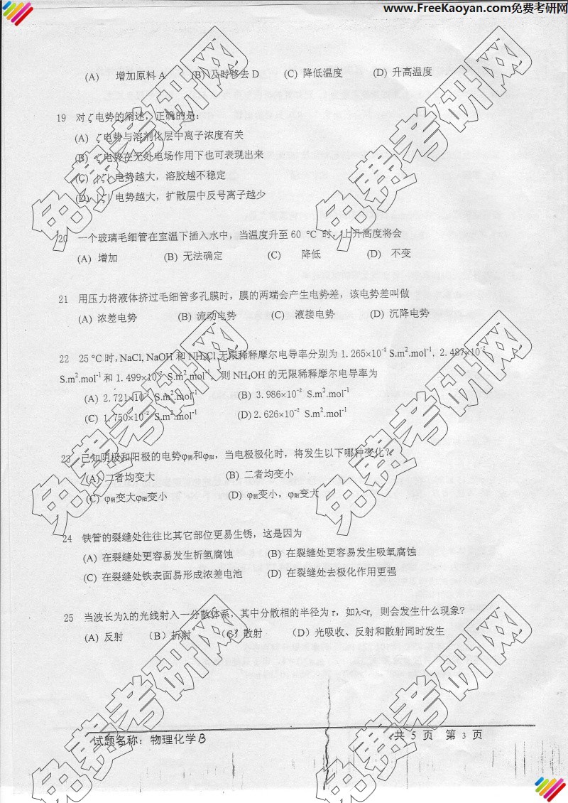 中国科学技术大学2006年考研真题-物理化学B(3)