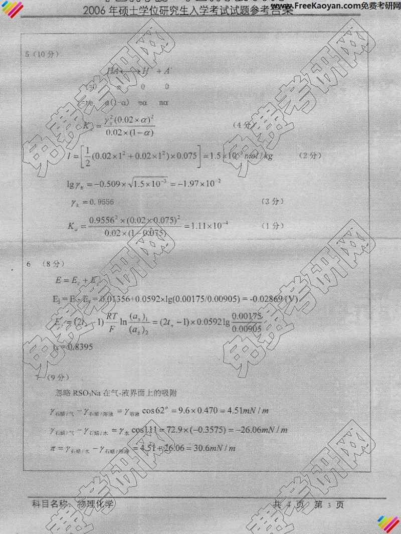 中国科学技术大学2006年考研真题-物理化学B答案(3)