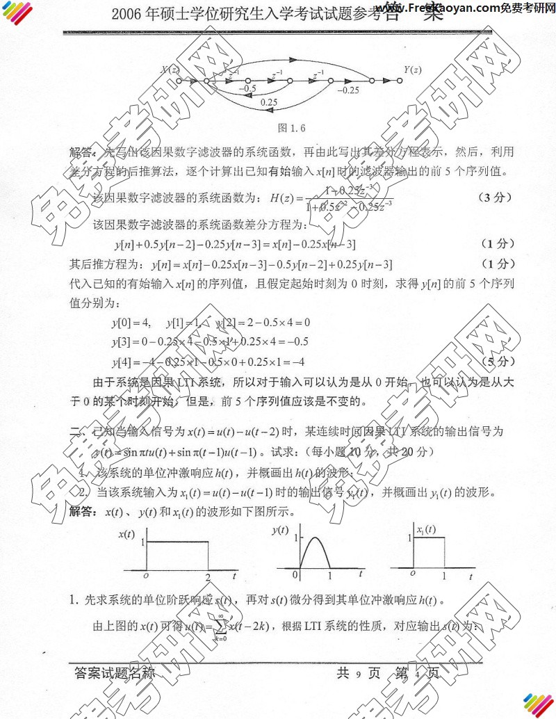 专业课考研经验 本站小编 FreeKaoyan 2018-01-22中国科学技术大学2006年考研真题-信号与系统