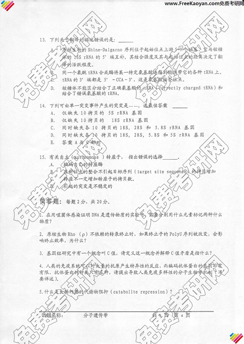 中国科学技术大学2006年考研真题-遗传学(4)