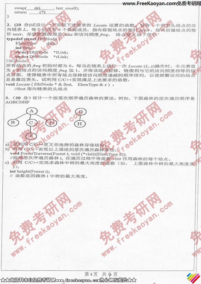 中山大学2006年考研真题-数据结构(4)
