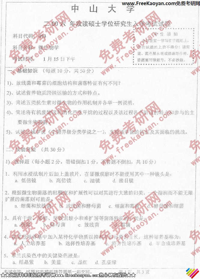 专业课考研经验 本站小编 FreeKaoyan 2018-01-22中山大学2006年考研真题-生物化学