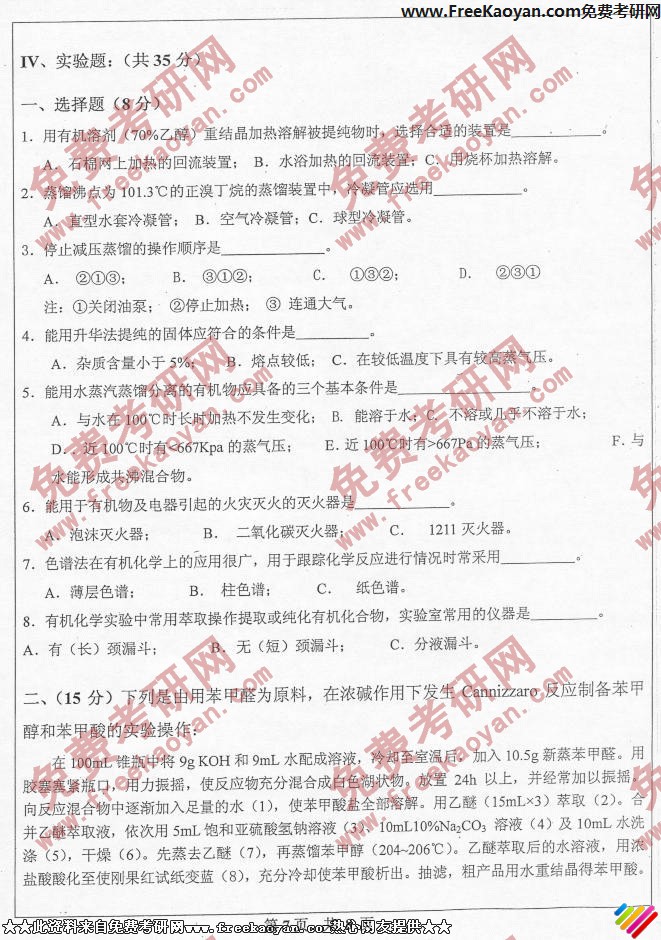 相关话题/中山大学 考研真题 有机化学