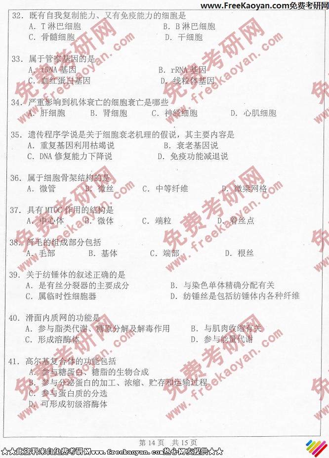 专业课考研经验 本站小编 FreeKaoyan 2018-01-22中山大学2006年考研真题-生物化学