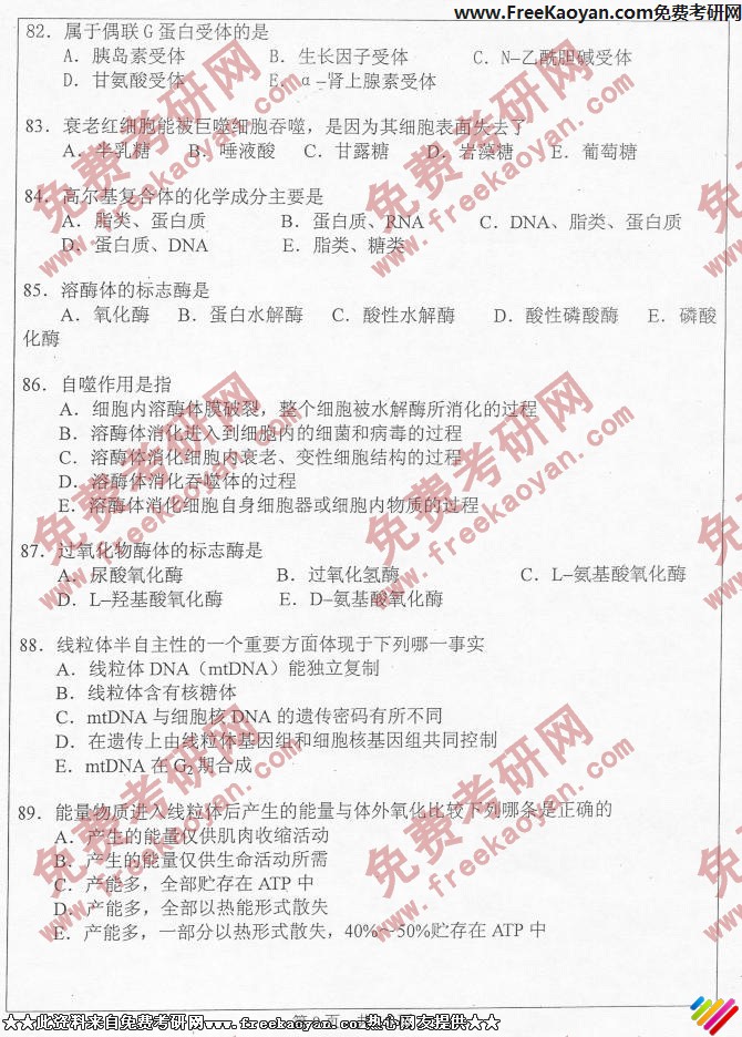 专业课考研经验 本站小编 FreeKaoyan 2018-01-22中山大学2006年考研真题-生物化学