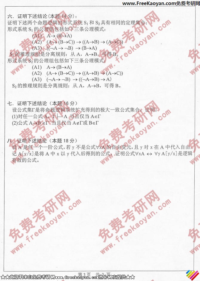 中山大学2006年考研真题-数理逻辑(3)