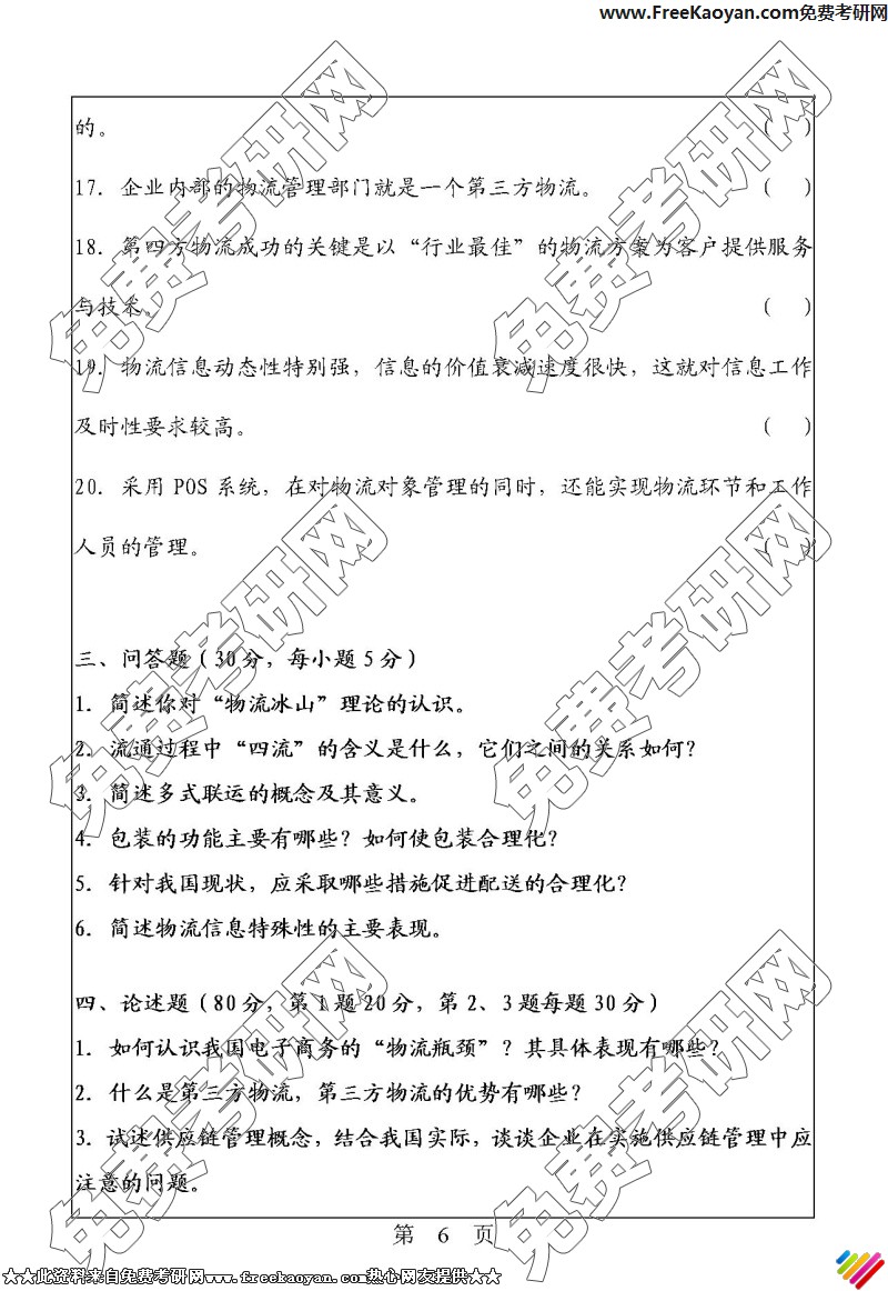 专业课考研经验 本站小编 FreeKaoyan 2018-01-22华南理工大学2006年考研真题-高分子化学与物理