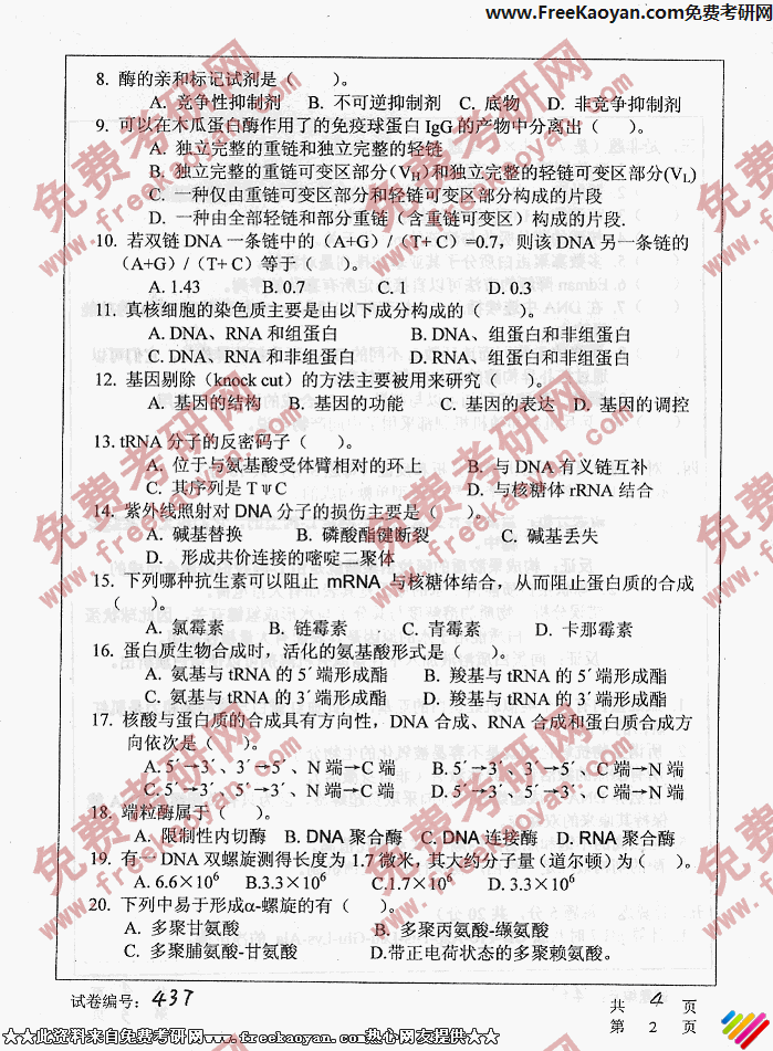 相关话题/考研真题 华中科技大学 分子生物学 生化