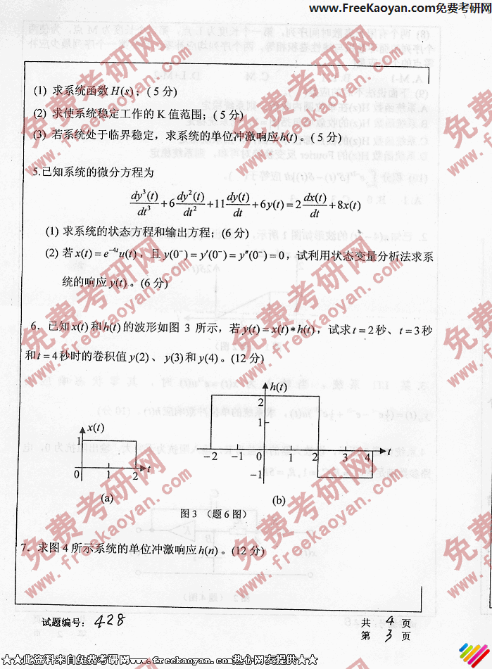 华中科技大学2006年考研真题-信号与系统(3)
