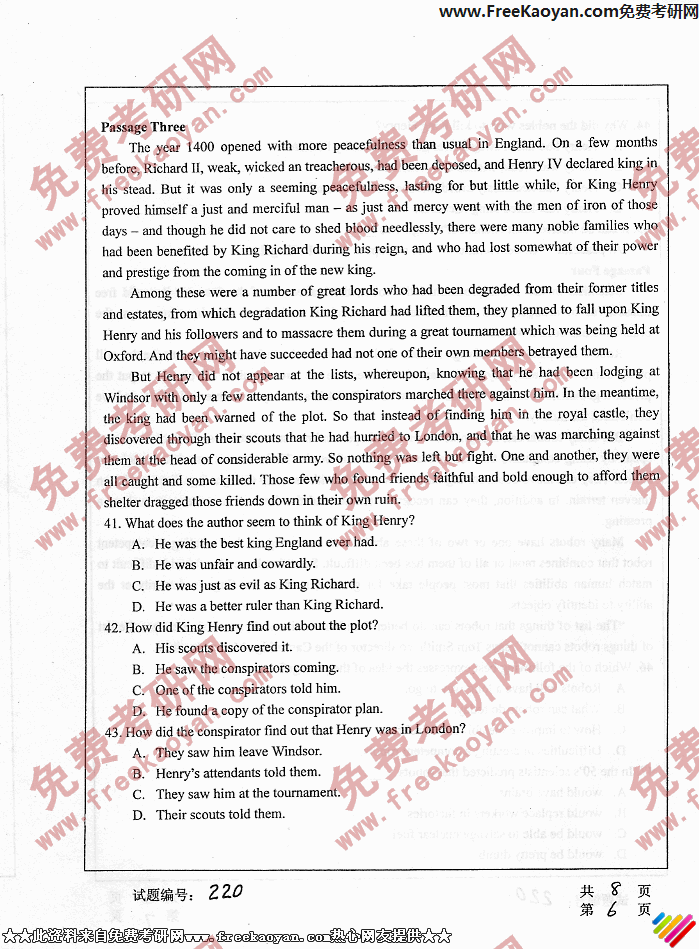 华中科技大学2006年考研真题-英语(单考)(6)