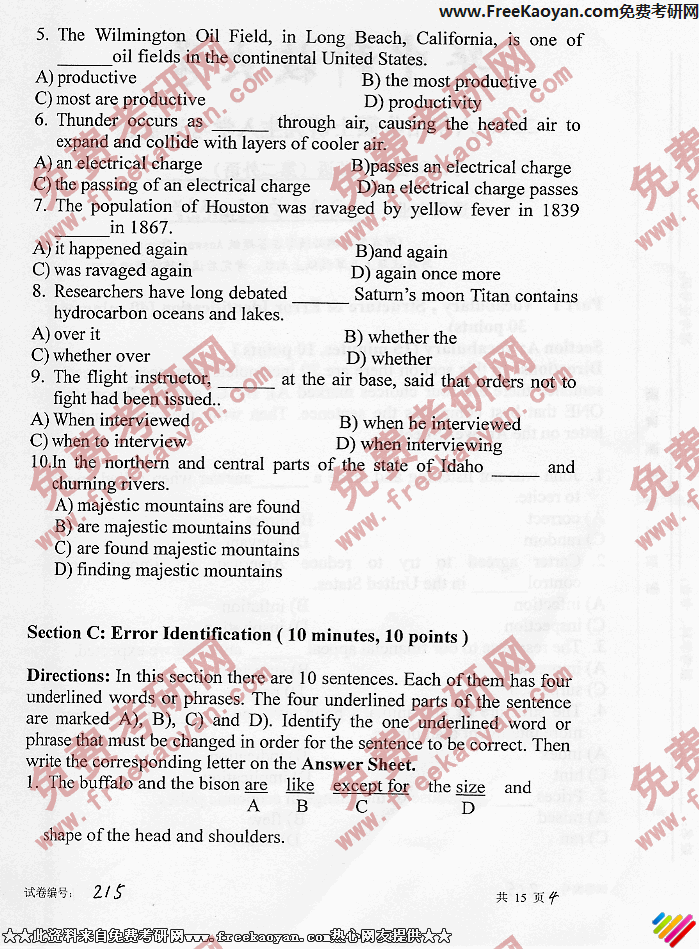 专业课考研经验 本站小编 FreeKaoyan 2018-01-22华中科技大学2006年考研真题-英语(单考)