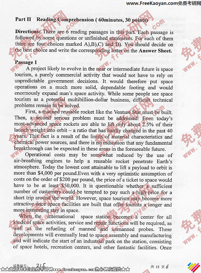 专业课考研经验 本站小编 FreeKaoyan 2018-01-22华中科技大学2006年考研真题-英语(单考)