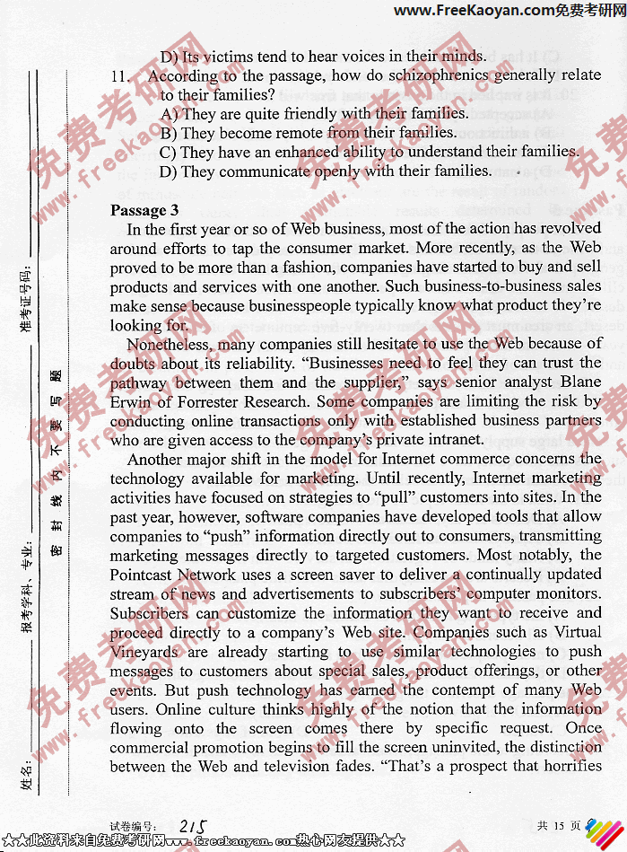 专业课考研经验 本站小编 FreeKaoyan 2018-01-22华中科技大学2006年考研真题-英语(单考)