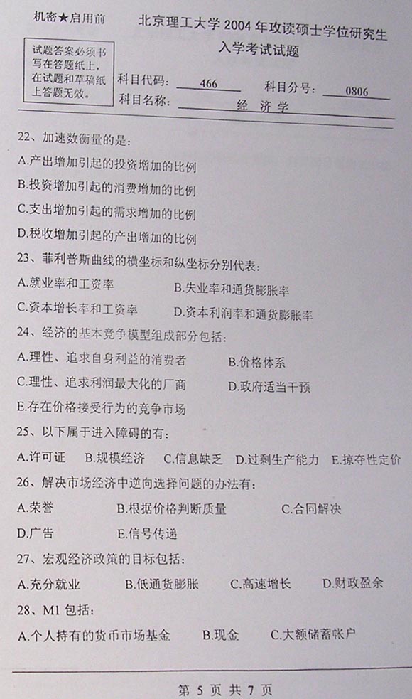 专业课考研经验 本站小编 FreeKaoyan 2018-01-22北京理工大学2003年考研真题-经济学基础