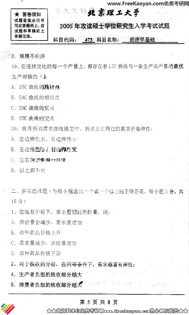 专业课考研经验 本站小编 FreeKaoyan 2018-01-22北京理工大学2004年考研真题-经济学基础