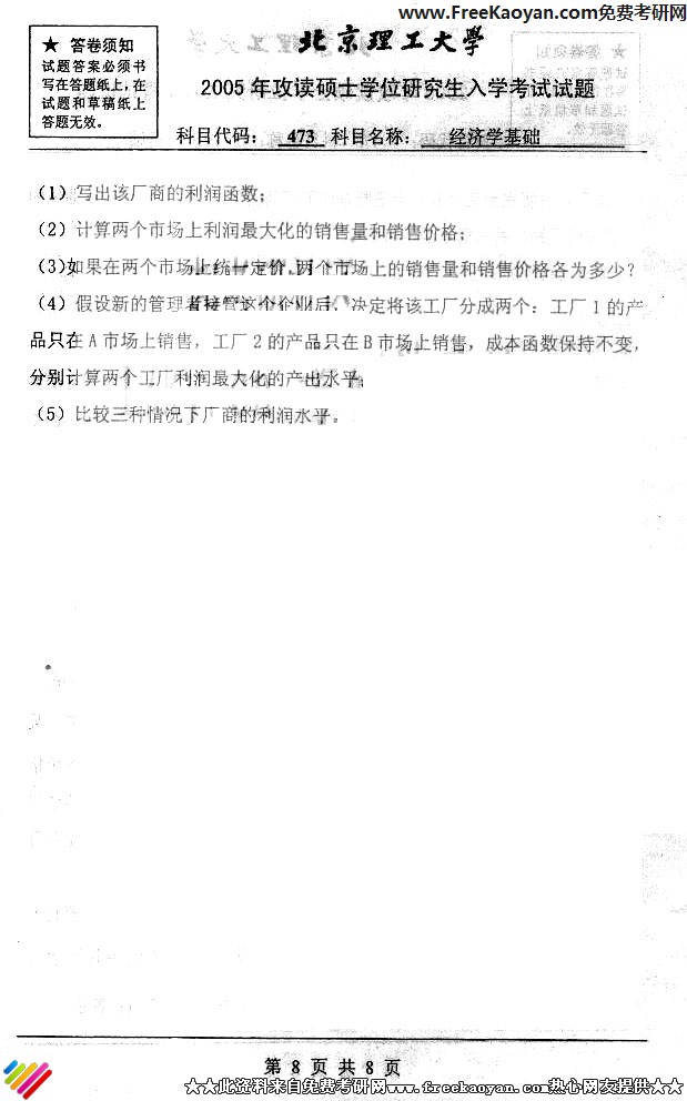 北京理工大学2005年考研真题-经济学基础(8)