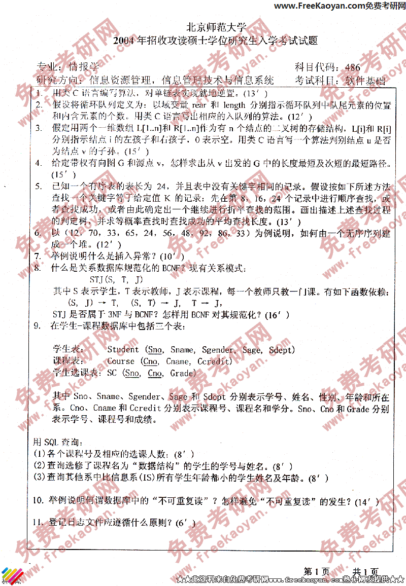 北京师范大学2004考研真题-软件基础