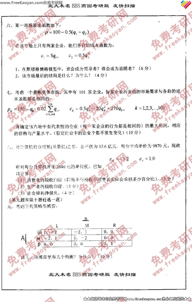 专业课考研经验 本站小编 FreeKaoyan 2018-01-22北京大学1996-2001年考研真题-经济中心微观考题答案