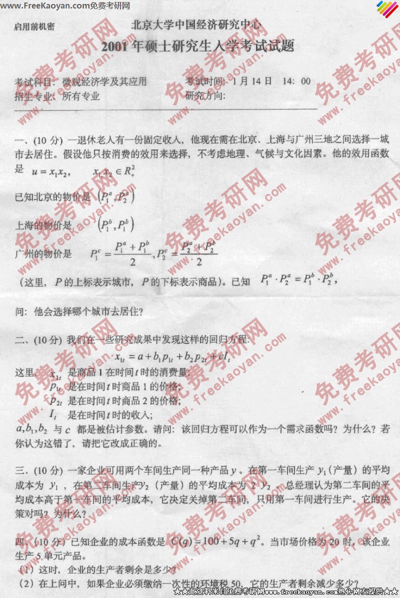 专业课考研经验 本站小编 FreeKaoyan 2018-01-22北京大学2000年考研真题-经济学原理